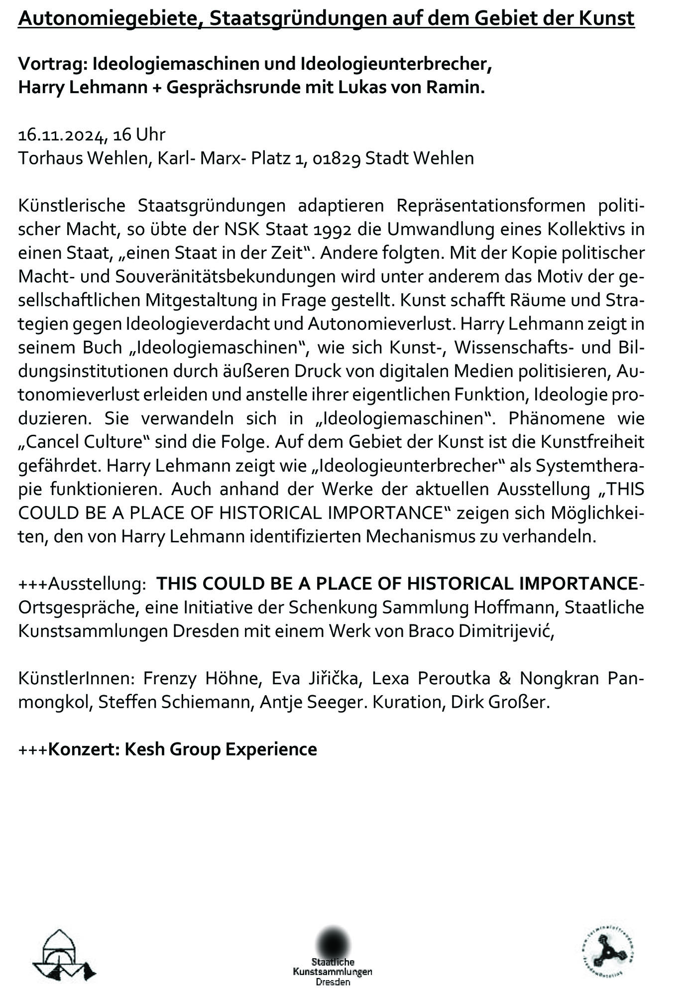 Der Vortrag ist Teil des Formates „Autonomiegebiete, Staatsgründungen auf dem Gebiet der Kunst“.
