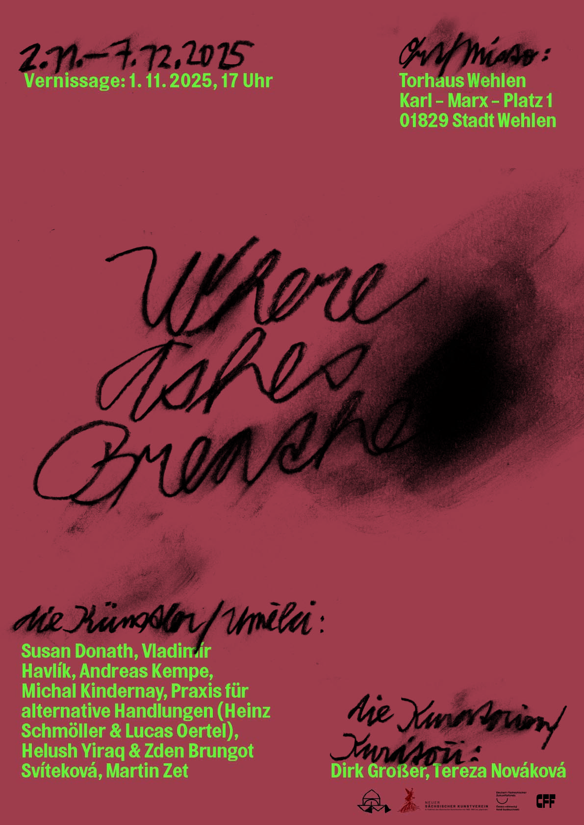 2022 ereignete sich der größte Waldbrand in der Geschichte Tschechiens. Die Künster der Ausstellung untersuchen in ihren Werken das Verhältnis von Mensch und Natur und nehmen Bezug auf die Naturkatastrophe. Wie zeigt sich die Zerstörung, wie regeneriert sich die Natur und welche Impulse des Neuerwachens zeigen sich auf dem Gebiet, wo verkohlte Baumstämme immer noch an die Katastrophe erinnern? Wie kann Kunst unsere Wahrnehmung solcher Ereignisse im Hinblick auf eine gestaltbare Zukunft prägen?